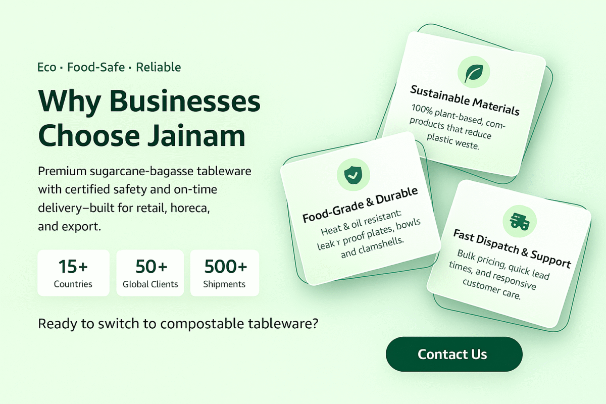Contact Details +919228411117 +918905111511 Om shopping centre Ravapar road, Morbi Pincode=363641 Jainamgroup555@gmail.com INFORMATION ABOUT US CONTACT US FOR ANY QUESTIONS Product Inquiry Form Full Name * Email Address * Phone * Product Interested In * —Please choose an option—Takeaway ClamshellRounded PlatesCompartment PlatesBowls Message *
